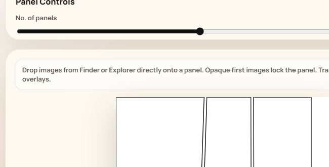 Drop files from Explorer or Finder directly into panels and keep every image clipped to its own frame.